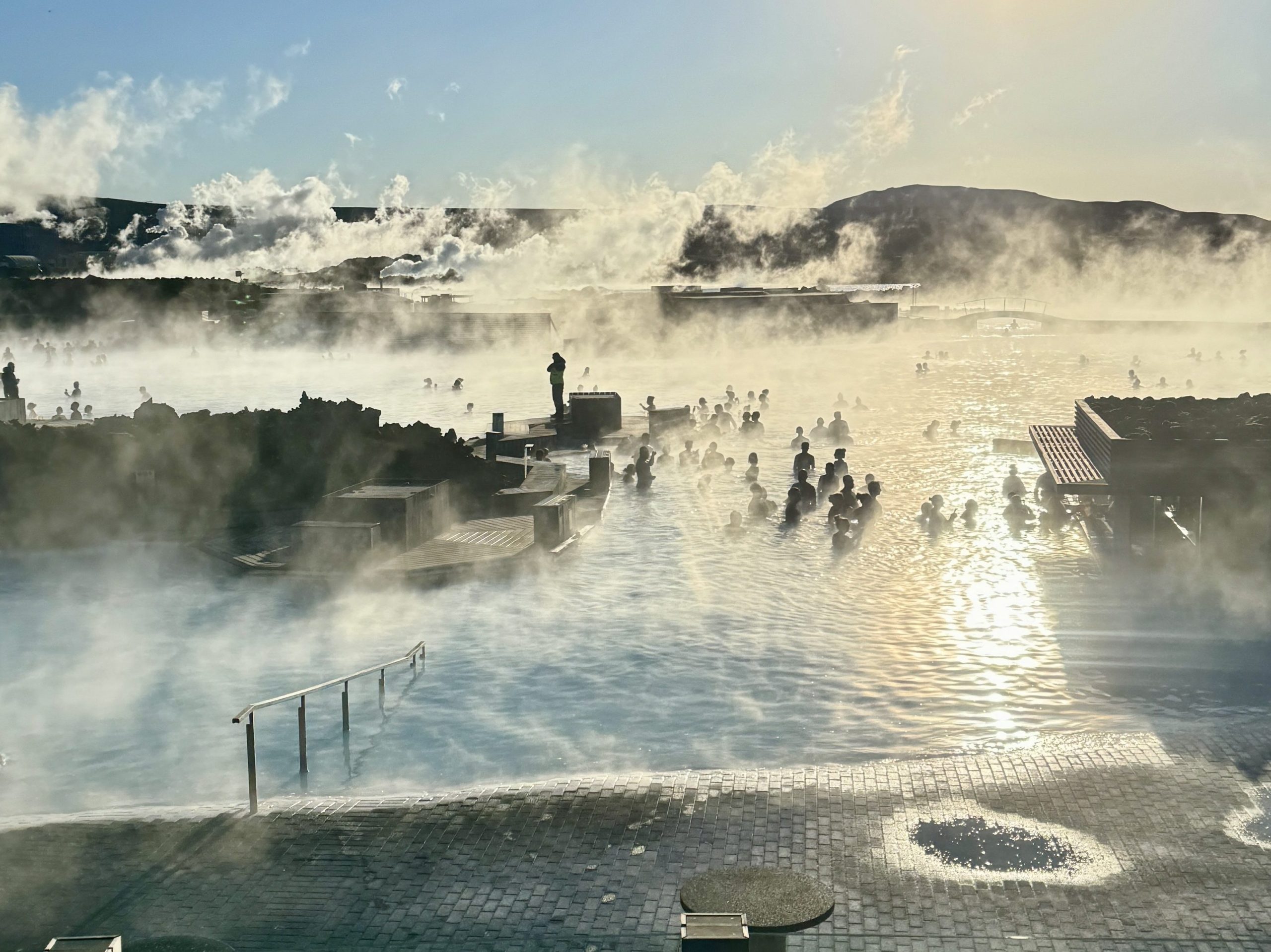 アイスランドの地熱温泉は、水着を着て入る混浴スタイルで知られており、天然温泉ではないものの、湯温は年間通して約39度に保たれているため、訪れる人々は快適に入浴を楽しむことができます。