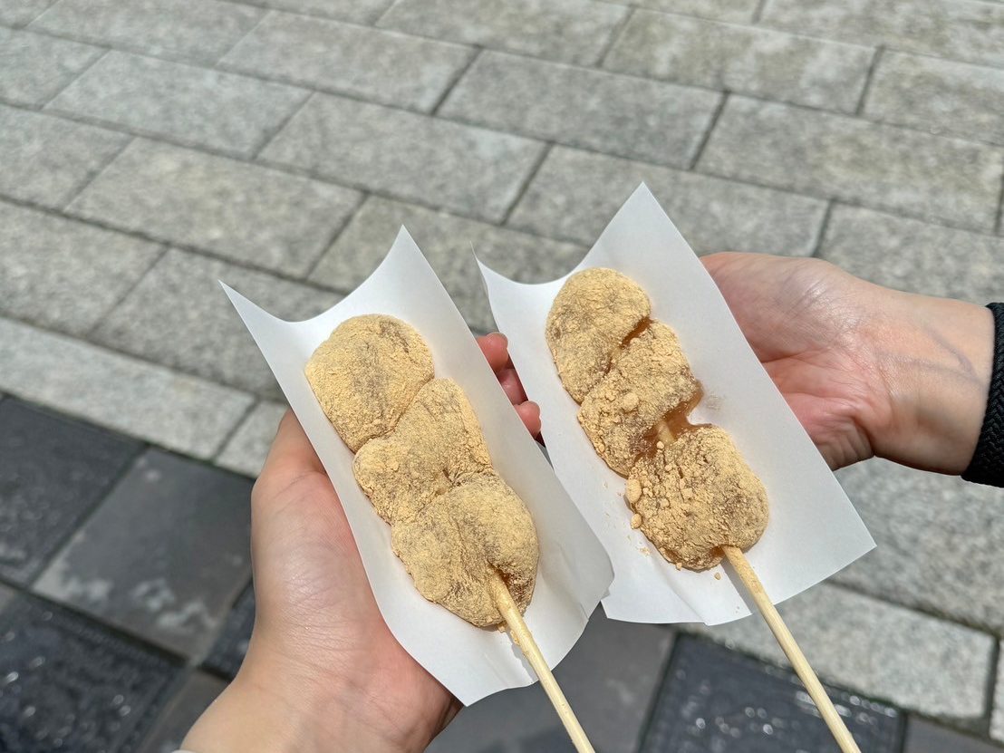 また、参道には多くのお土産屋さんや飲食店が立ち並んでいます。参拝前には、「太宰府参道 天山」のわらび餅をいただきました。本格的なわらび餅で、甘すぎずモチモチとろける食感がとても絶品でした。