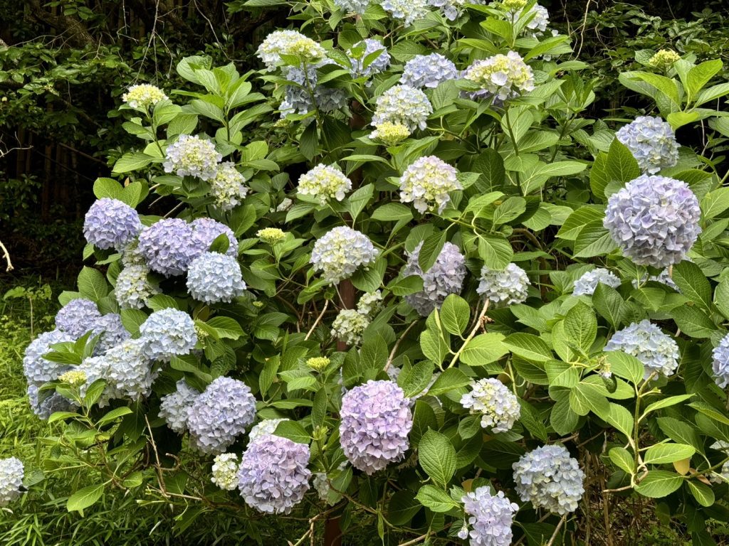 2025年6月23日現在、開花状況は8分咲きであり、これからの雨によってさらに色づいていく様子が楽しみです。(写真は2024年6月17日の様子です。)