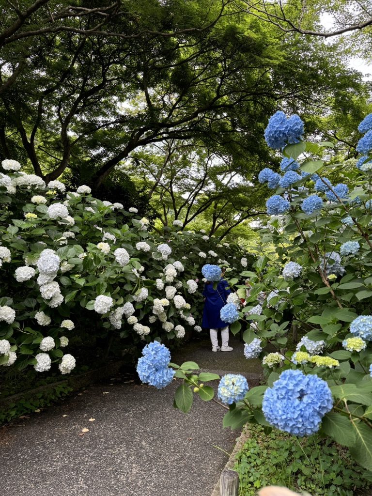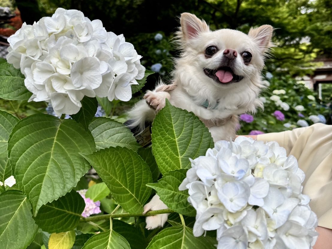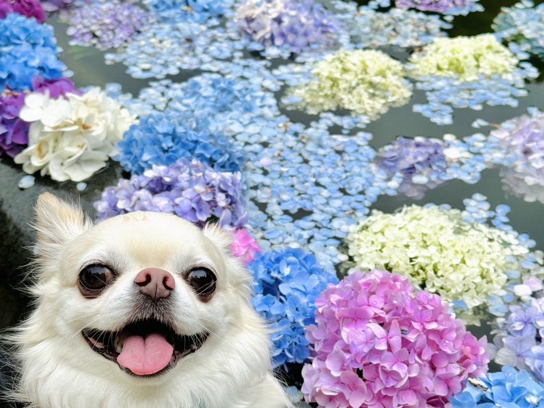 この季節は紫陽花が咲く時期で、近くの公園を楽しんでいるものの、別の場所でも紫陽花を見たくなり、犬と一緒に訪れることができるスポットを探しました。