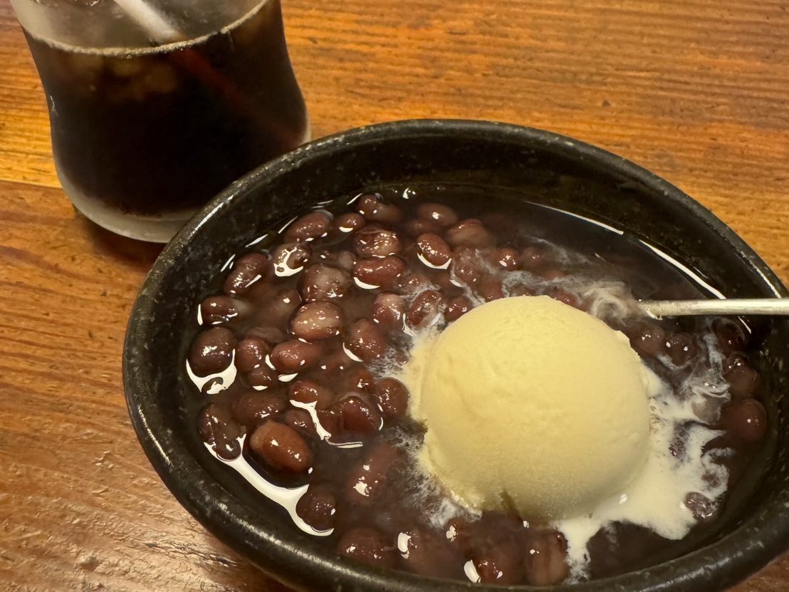 きつねうどんは出汁が効いていて、アイスコーヒーはスッキリとした味わい、さらにさっぱりとした小豆がほろほろのぜんざいにミルクアイスが程よくアクセントとなり、どれも大変美味しくいただきました。