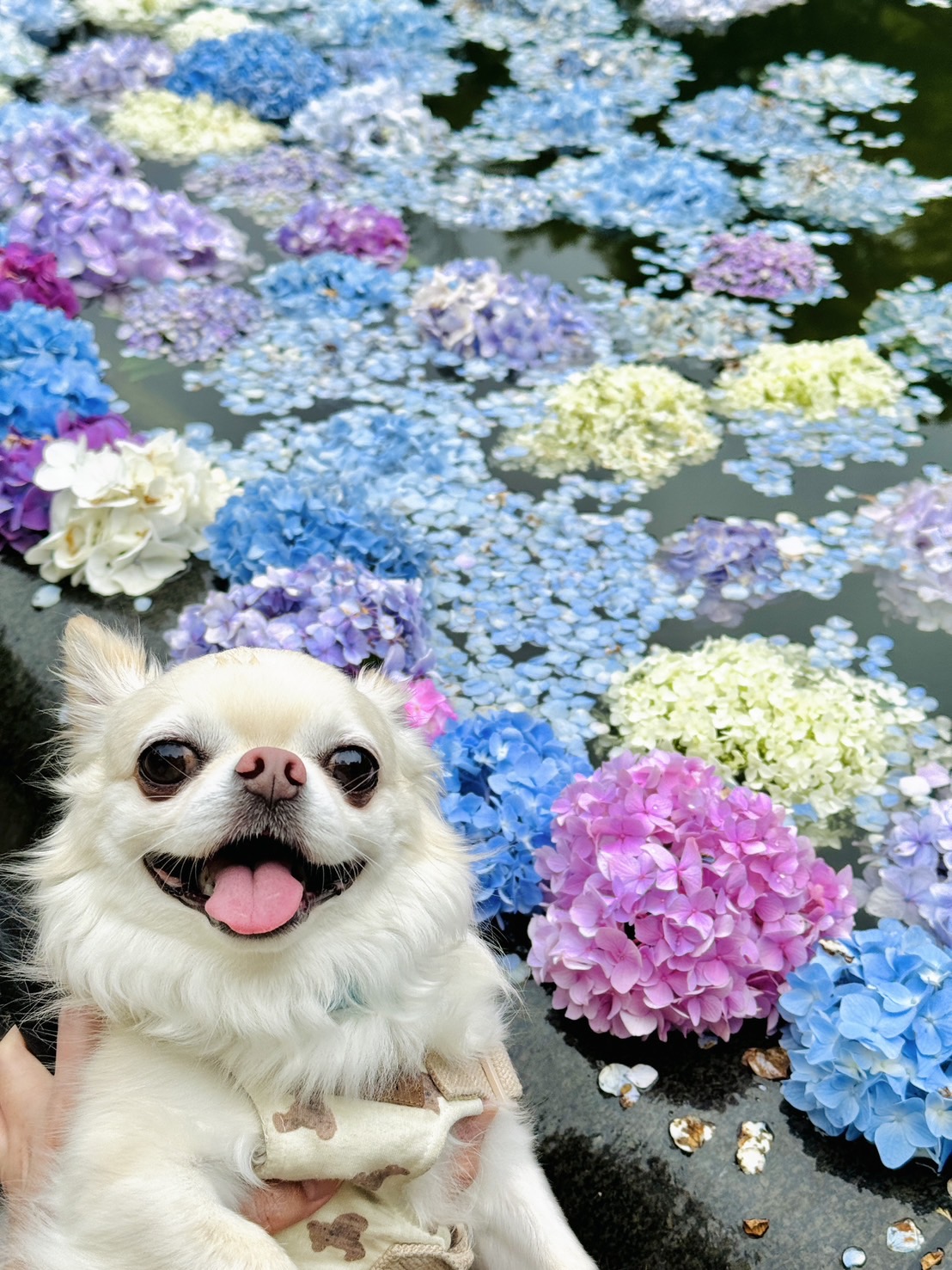 この季節は紫陽花が咲く時期で、近くの公園を楽しんでいるものの、別の場所でも紫陽花を見たくなり、犬と一緒に訪れることができるスポットを探しました。